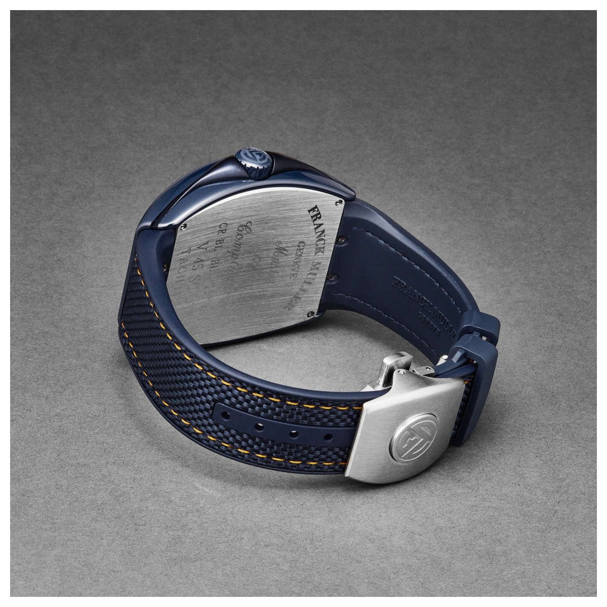 - A large 45mm stainless steel case with a distinctive tonneau shape, which has become a signature of the Franck Muller brand